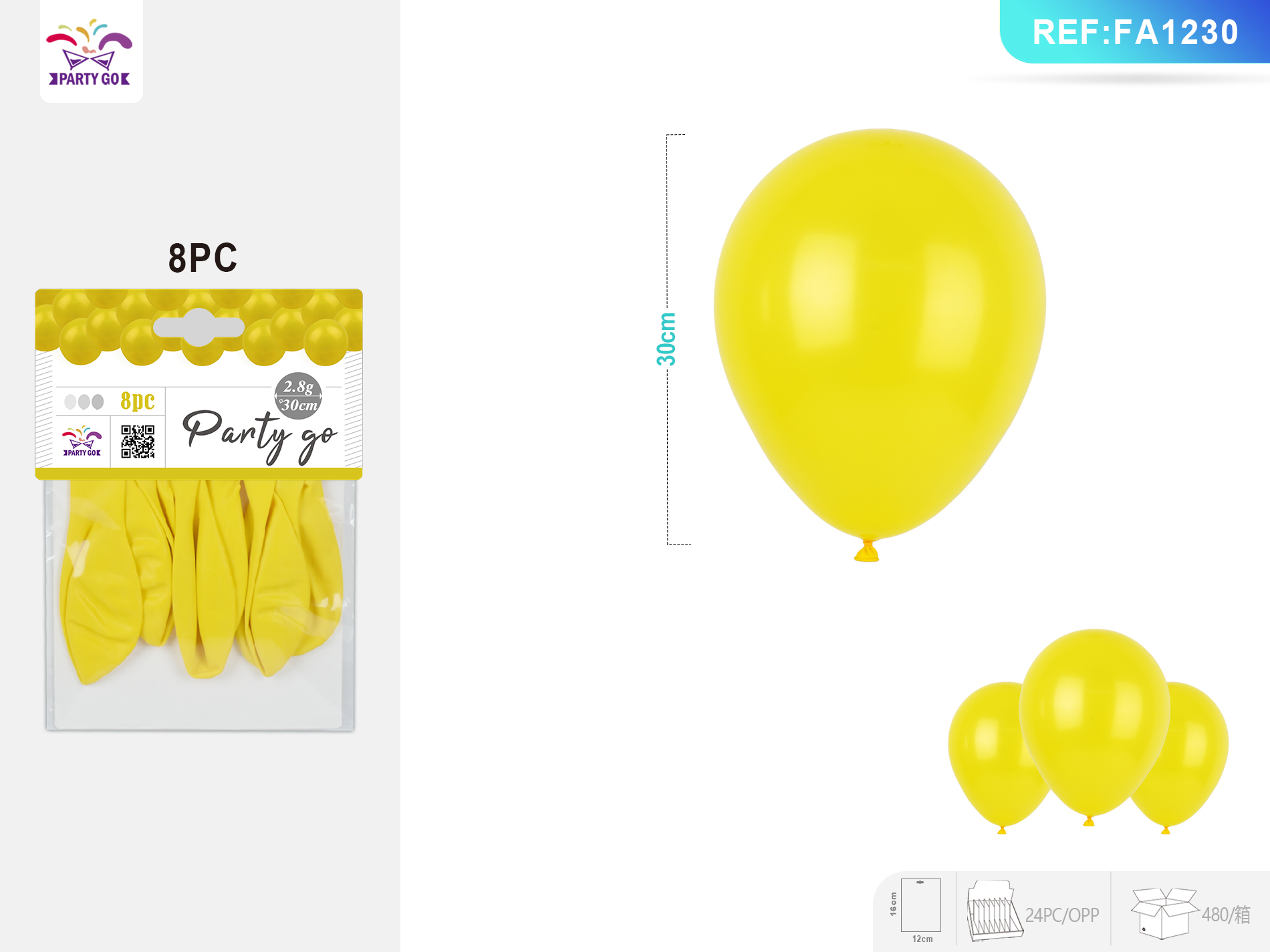 2.8G PALLONCINI IN LATTICE EMOJI GIALLO 30CM 6PC