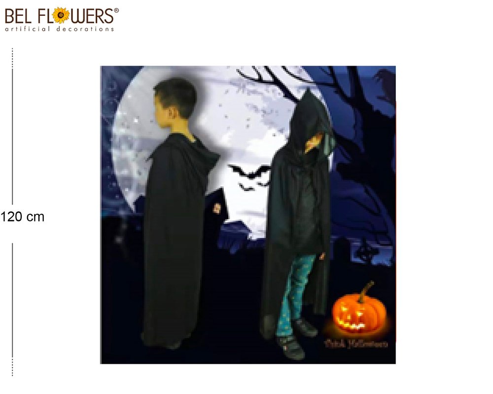 BEL HLW: MANTELLO VAMPIRO C/CAPPUCCIO  120CM - BLK