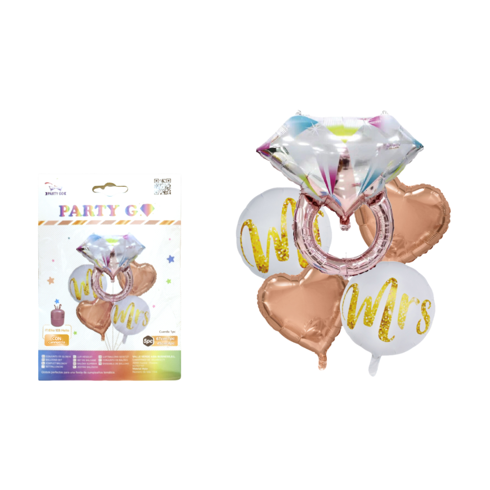 SET DI PALLONCINI MYLAR ARCOBALENO MONGOLFIERA 5PC