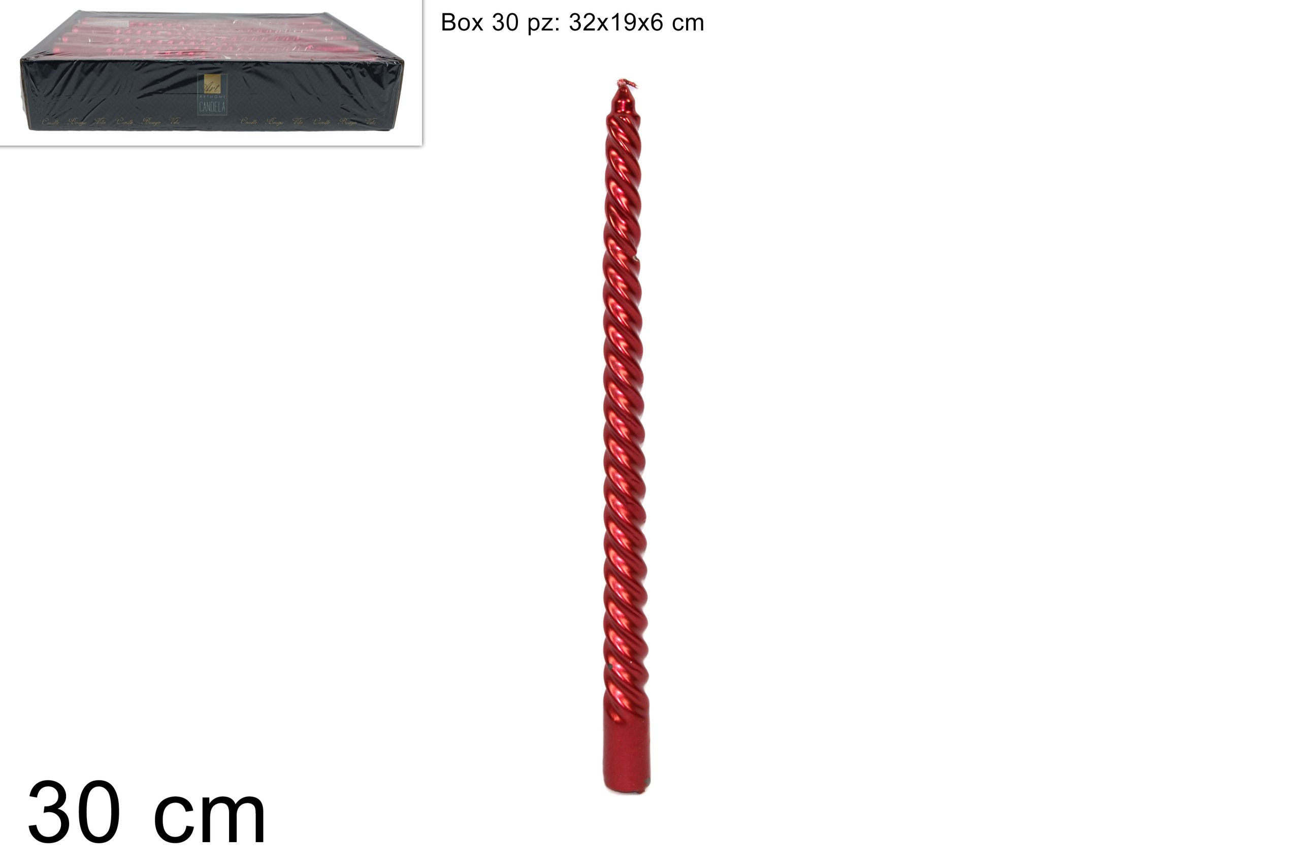 CANDELA TORCIGLIONE ARGENTO METALLIZZATA 24CM