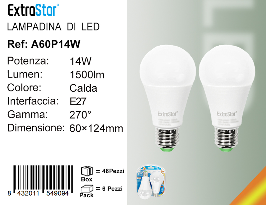 LAMPADINA LED E27 18W 1450LM L.CALDA QTA/48