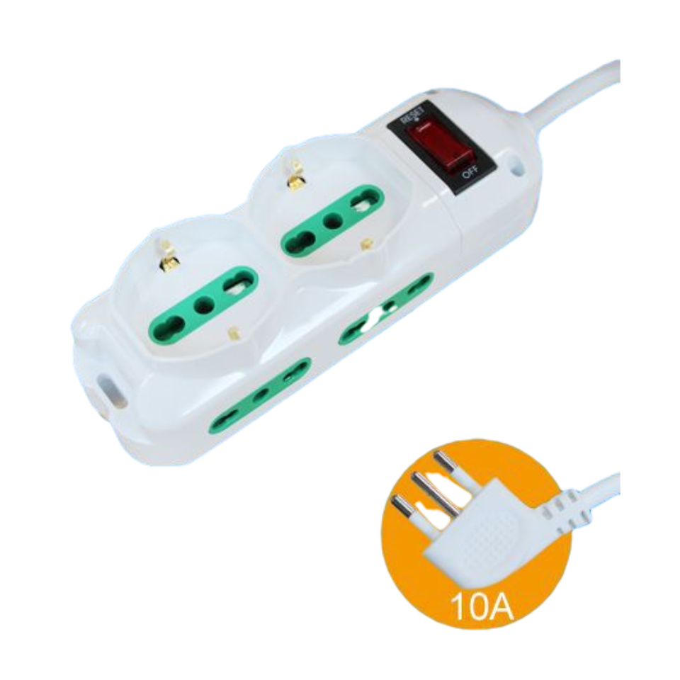 MULTIPRESA 5 POSIZIONI 10/16A SPINA 10A CON SOVRACCARICO 3M QTA/40