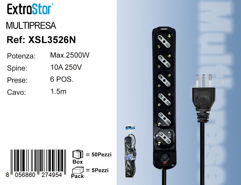 PRESA A 6 POSIZIONE CON INTERRUTORE 5M MAX 3680W