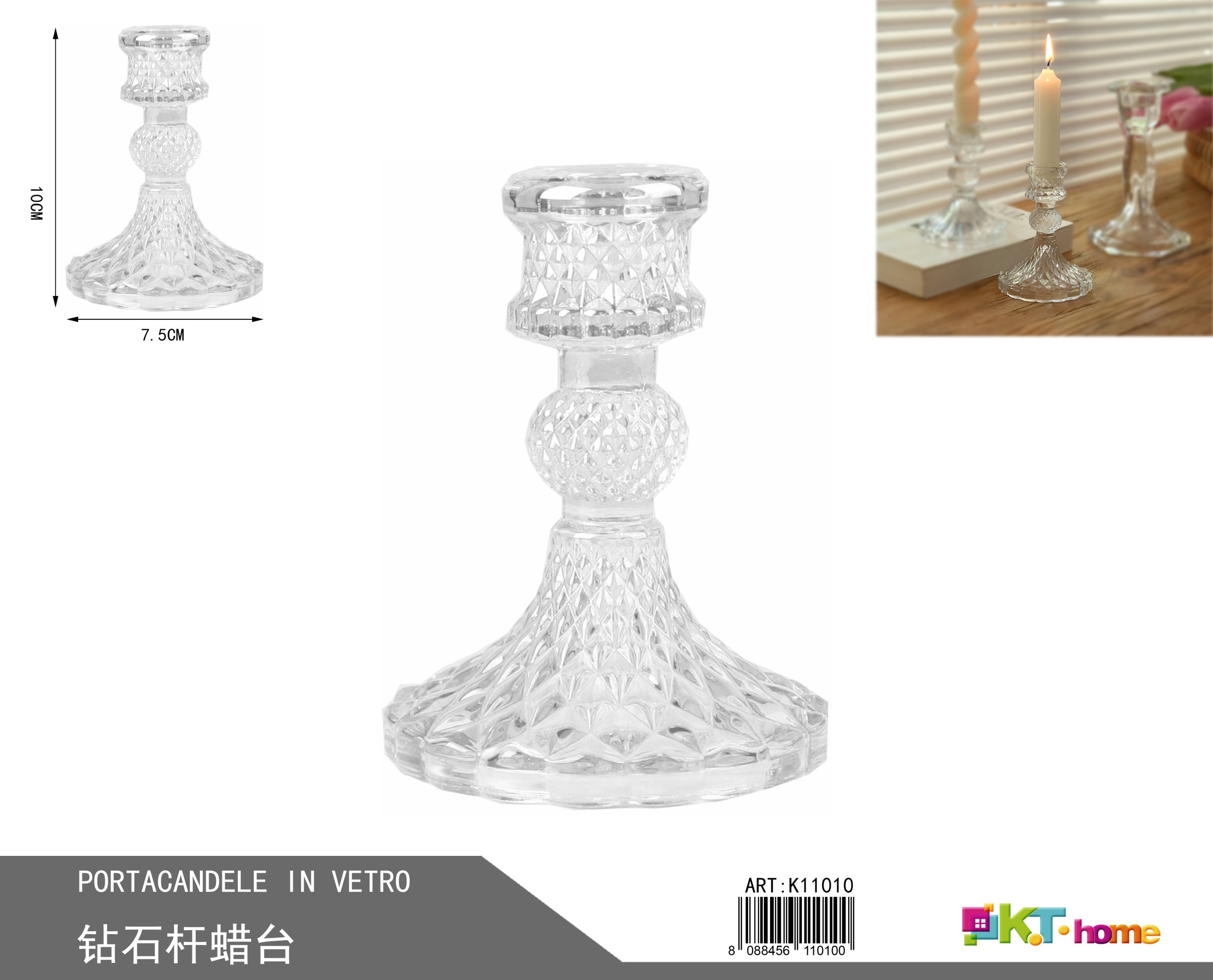 PORTACANDELE IN VETRO 7.5X2